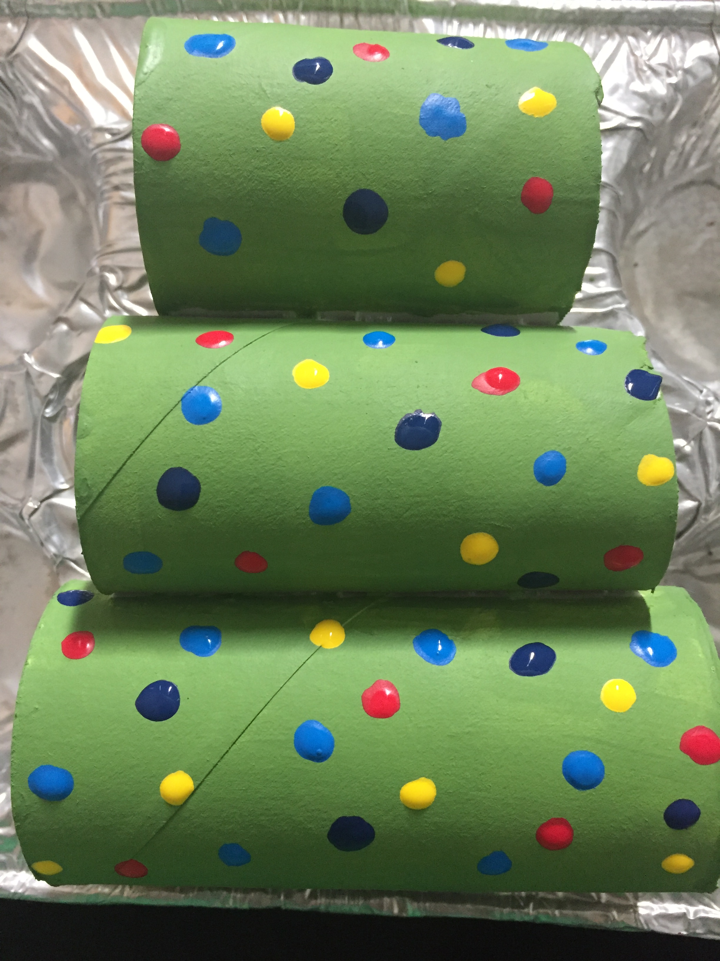 Step 1: Cut into roll about a 1/4 inch in, then cut around to get a shorter tube. Continue this until you get the size of tree you want. I chose to use 3 tubes.