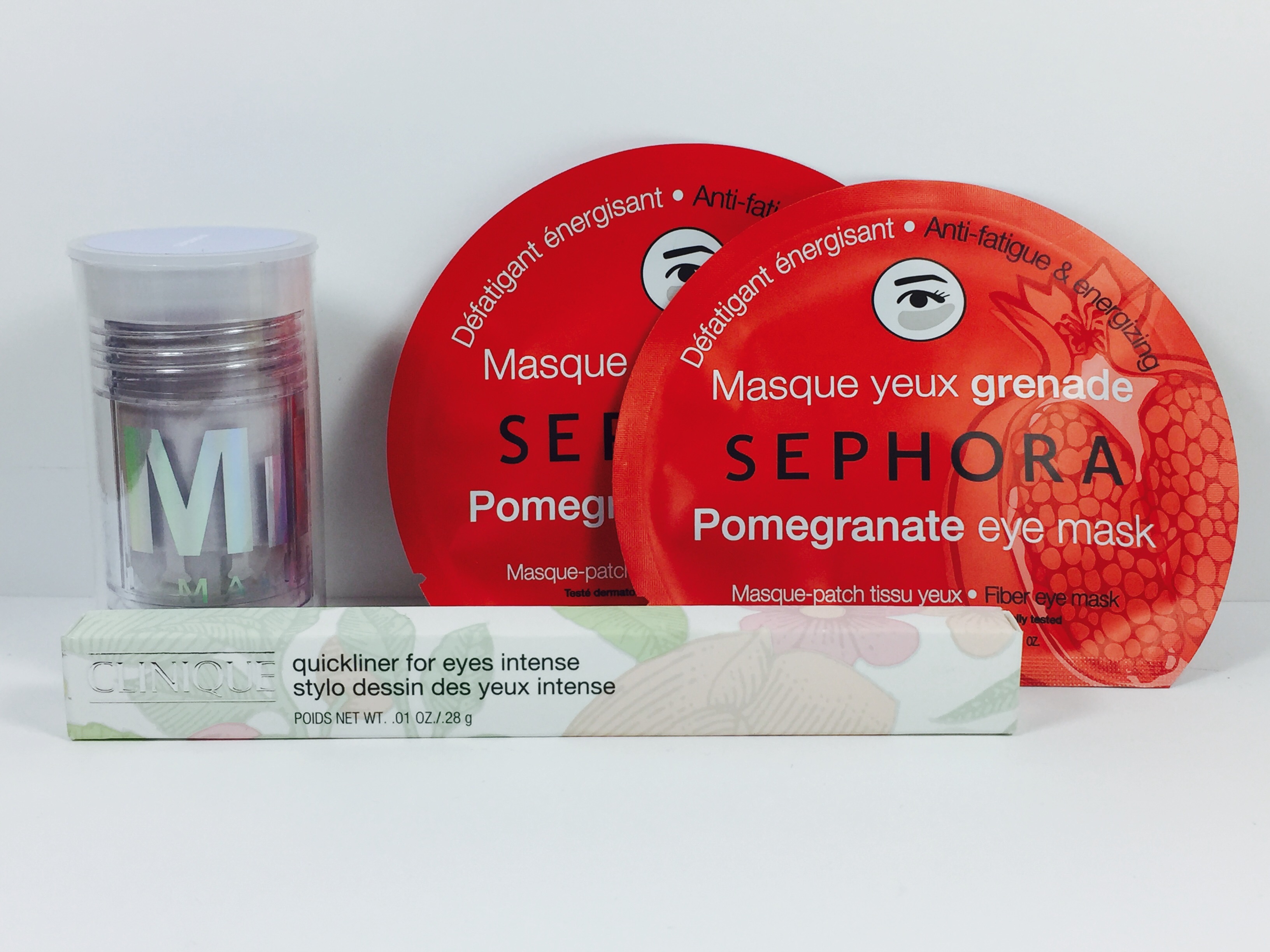 First lets take a look at the few items I picked up for my mom. My mom first picked out the Milk Makeup Holographic Stick in Supernova.  This choice surprised me. I kindly asked if she knew it was probably going to be a purpley holographic shade on the skin. She said she wanted to try it out and it looked cool and if she doesn’t like it, I can have it. All I can say is, GO MOM! She is far more adventurous with makeup than I am. Next up she chose the Clinique Quickliner for Eyes Intense in Intense Midnight. It is a deep almost navy blue. Like I said my mom is much more adventurous with makeup than I am. I know a navy blue isn’t exactly out there as far as liner goes. I actually think the deeper or mid toned blues are becoming more of a standard neutral like black or brown liner. My mom will also be receiving the Sephora Pomegranate eye mask. I have used the pomegranate and I think the rose eye mask as well. I love both of these and I think my mom will really like them. I think the Sephora Collection eye masks are great, they work and they are definitely affordable.
