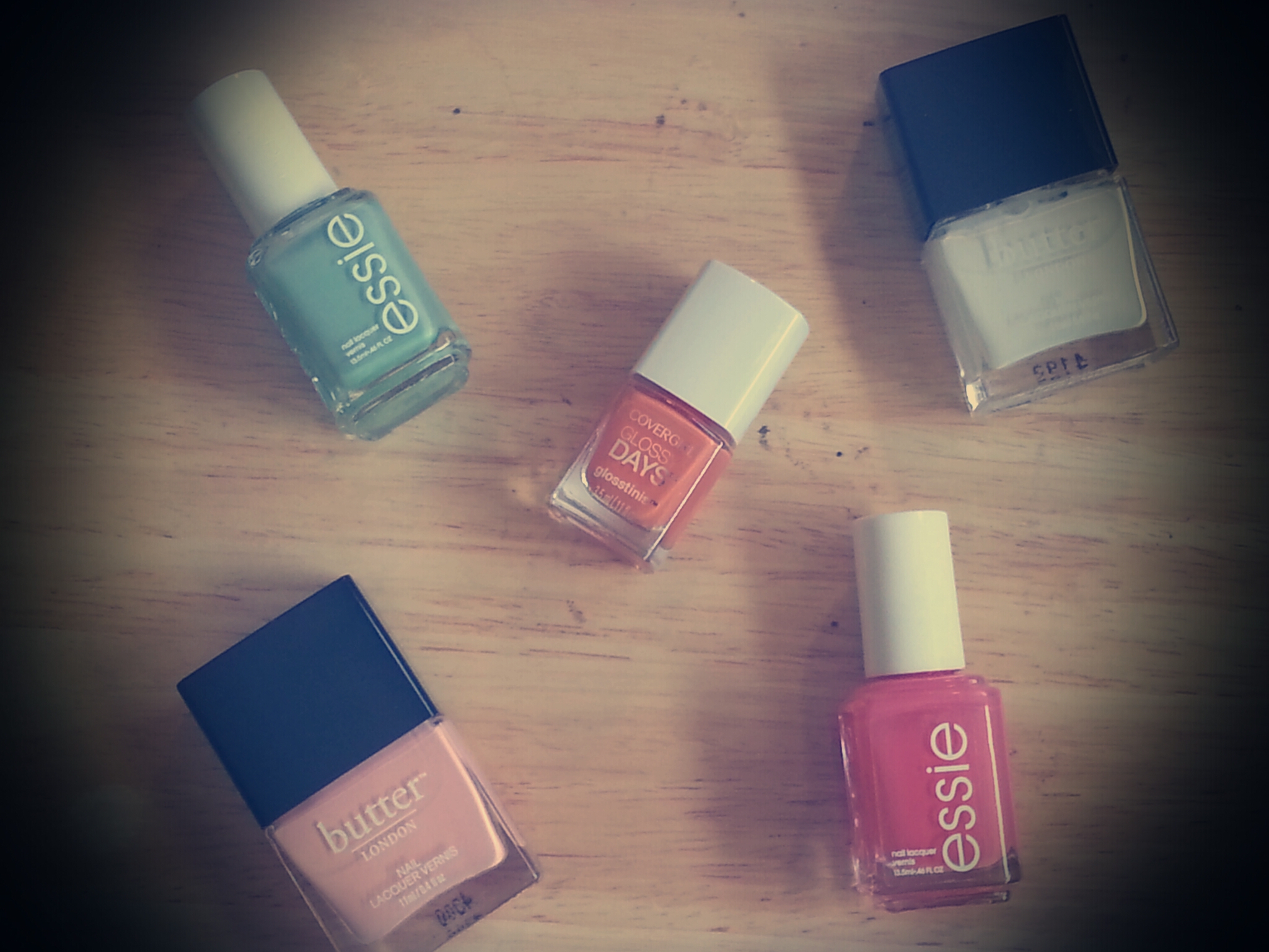 I chose these colors because I love the shades. They are all different in their own way. Summer time is every girls chance to experiment with bright colors. The easiest way to do that is through nail polish. For myself, I can’t rock a bright orange lipstick. I would love to but with my complexion I would look like a clown. I instead rock a traffic cone orange shade on my nails. As for white polishes, a good one is few and far between. Different formulas I’ve had in the past come off too much like white out. The Butter London formula is fantastic, and the white blends well with my skin tone.  As far as the pale, mint green and shades of pink, you can never go wrong with these. As the mermaid and beachy trends seem to be taking off, you don’t have to go very far to find a shade that works for you. Essie’s Cute as a Button is on my nails probably about 80% of the summer. It’s my go to color when I can’t decide what color to paint my nails next.